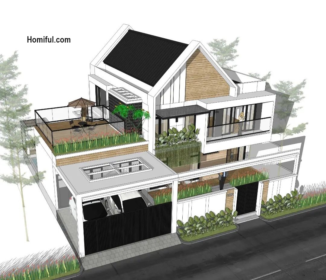 Homiful.com - This two-story magnificent house was built with dimensions of 15 x 15 meters. The chic and comfortable appearance of the rooftop makes residents feel comfortable when they want to relax and sunbathe. Let's see the details below.
