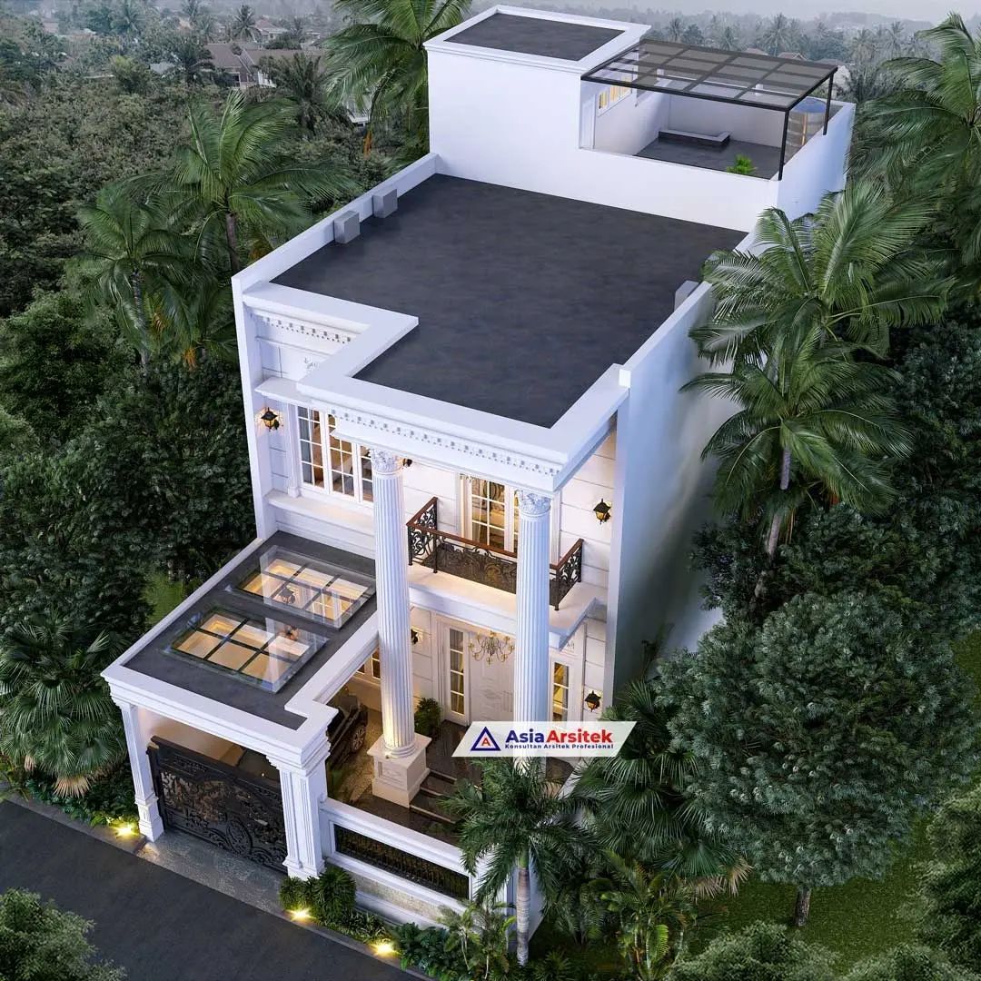 This 2-storey house is 8x18 meters, not as grand as a mansion but big enough for your small family. This house is beautifully designed in a modern classic style, boxy shape with classic facade details. Large columns with tall pillars become focal points.