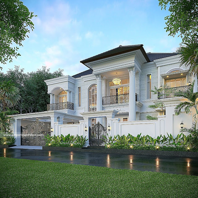 The stunning appearance makes the design of this classic 2-story house look more elegant. The design which is dominated by white and the dark roof also provides a balanced and matching design. Moreover, some supportive decorations make the house look extraordinary.